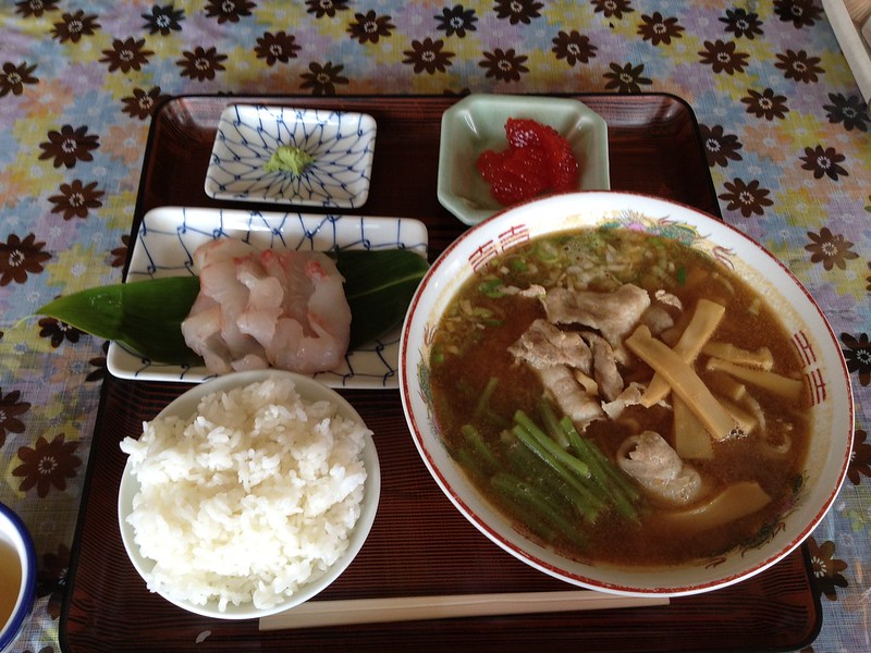 その代わりにラーメンには肉が入り、その他に筋子と刺身がついてきました。