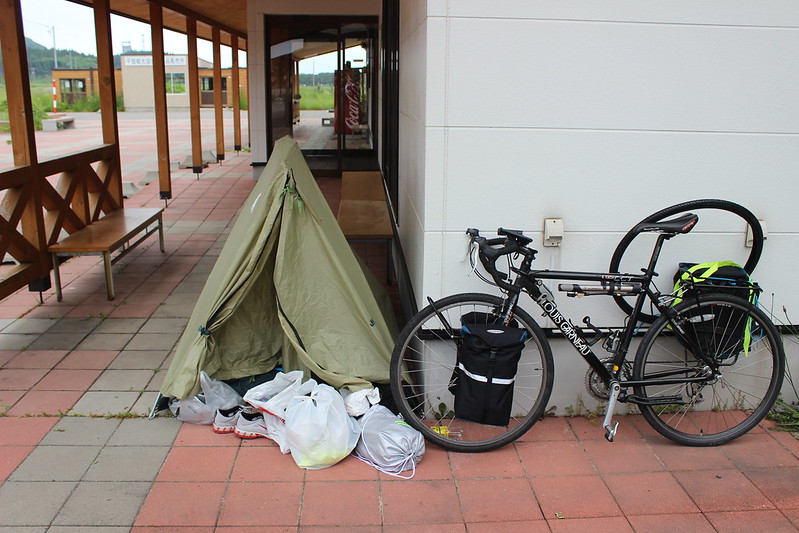 青森に入ってからカラスの襲撃が多く、ビニール袋などをテント外にだして寝るとつつかれることあります。