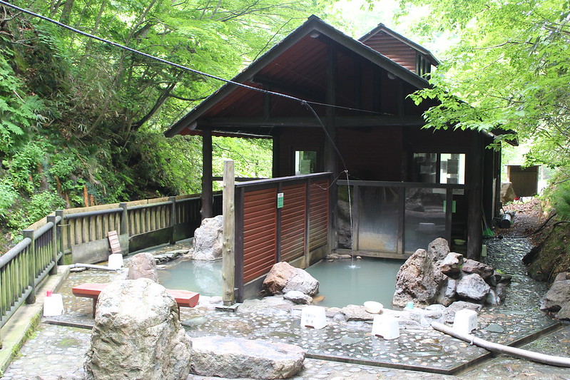 写真の右が男性用で左が女性用。着替える場所、風呂ともに別々ですが風呂は丸見えなので女性はご注意を。