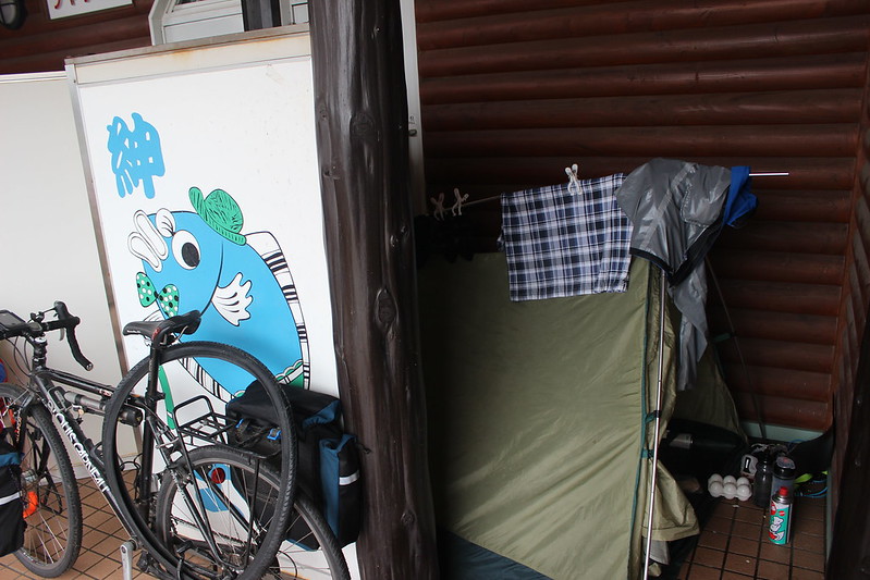 そしてこの道の駅には、屋根下にテントを張れるスペースがありました。