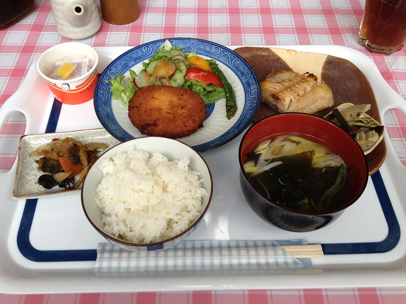 ごはん、味噌汁、魚、野菜、コロッケなど久々にバランスのとれた朝食でした。