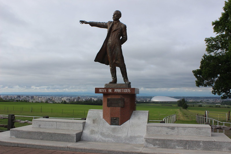 これじゃあイカンということで、羊ケ丘展望台のクラーク像と一緒に写真を撮り直すため、5人並んで羊ケ丘展望台へ向かいます。