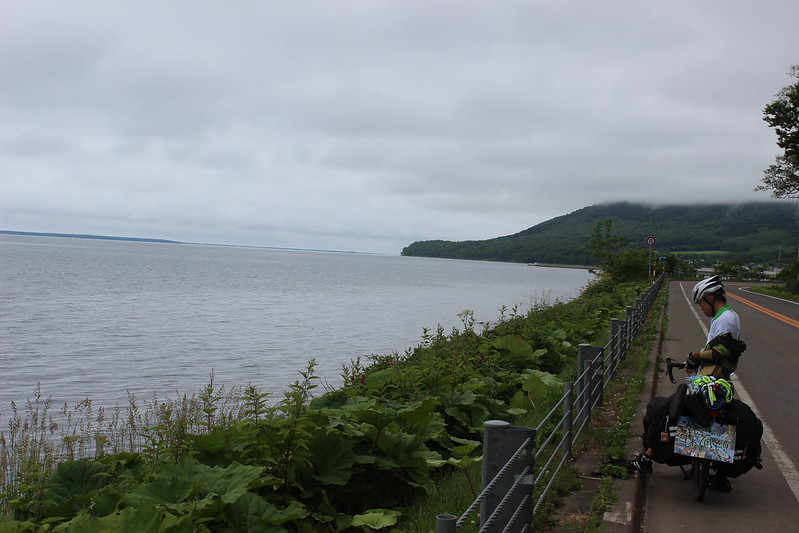 昨日、霧で見えなかったサロマ湖沿いに自転車を走らせます。