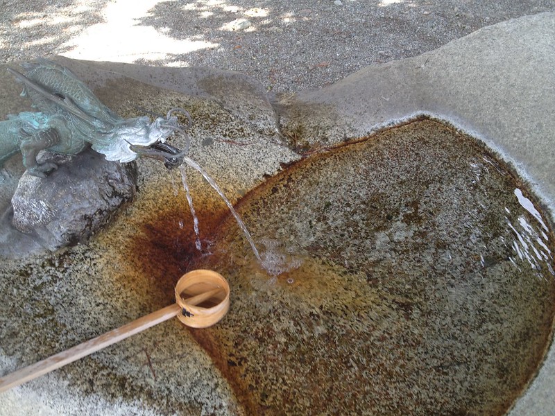 道の駅、向い側のお寺に湧き水があったので汲んでいきます。