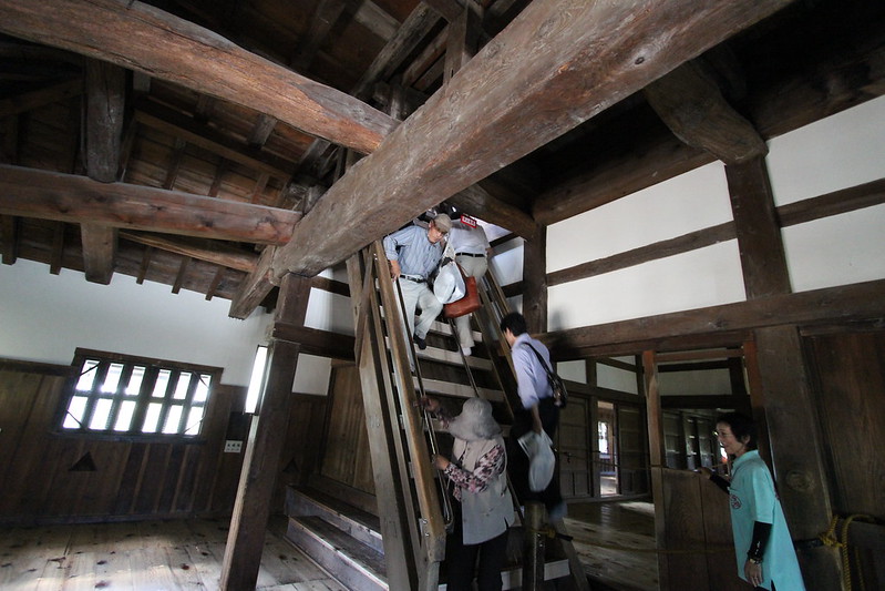 彦根城の内部にある階段はとっても急でした。70〜80度くらいか?